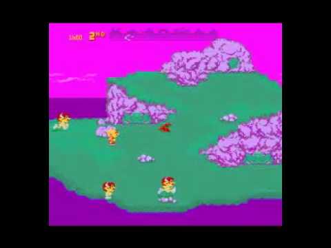 The screenshots used on this page were taken from MAME, and do not reflect the actual colors of the game. The water and sky are blues, the grass is green, and the rocks are grey.