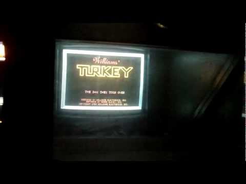 The year is 1989 and mutant turkeys have taken over. As one of Chief Ludzia's turkey terminators, it is your job to make the streets safe once more. A unique thing about the game was at the end of the level, actual turkey feathers would fly up between the protective plexi glass and the CRT. All you have is your gun with grenades on ammo. Good Luck!